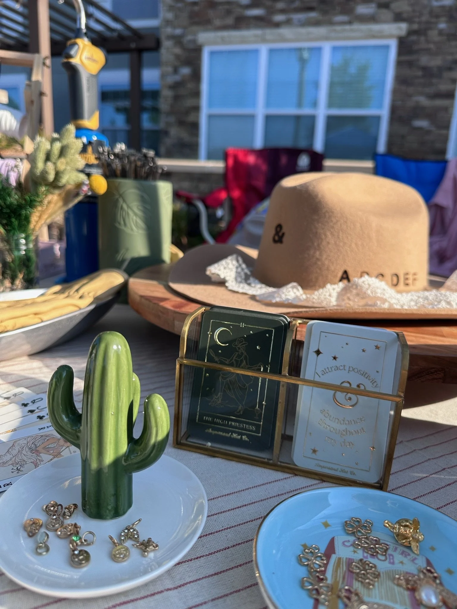 Hats, hats, & more hats (some other treasures, too). Our pop-up hat customization shop is equipped to make custom hat dreams come true.